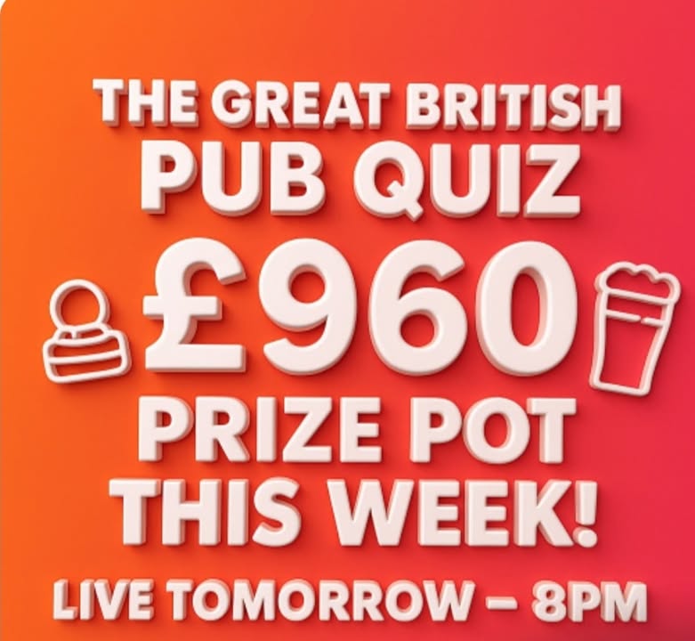 Hi all! It's Thursday so it can mean only 2 things - free pool all day And it's quiz night!!!! There's a massive £850 inthe jackpot this week in the final game! For your chance to win some of it come down and join in + £2.50 to play and 8pm start